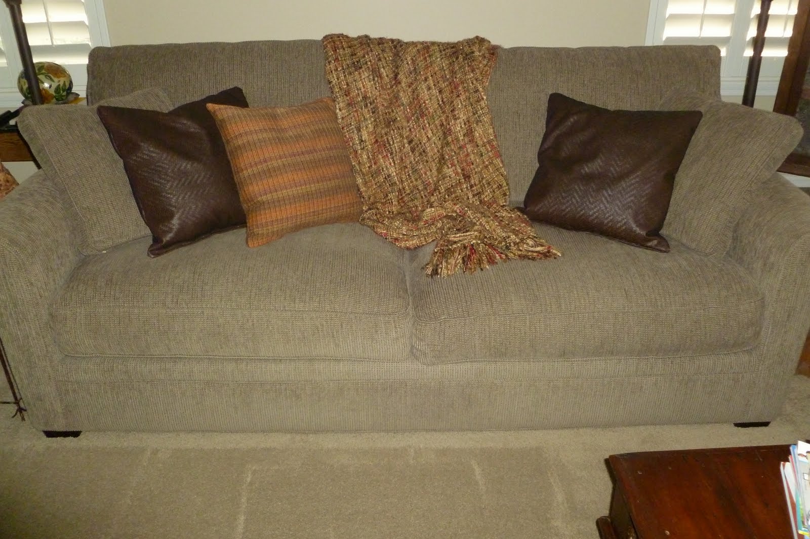All in all, I'm so glad I didn't go new. My sincere thanks to Norwood Furniture for being so stingy with your silly pillows! It made me think and allowed me to get creative and use what I already had. Craig and I have decided we don't want to add any more furniture to the heap when we'll probably be downsizing in a few years when he retires. Who knows! We could sell it all and end up singing the Mexican Hat Dance! The lesson is recycle!